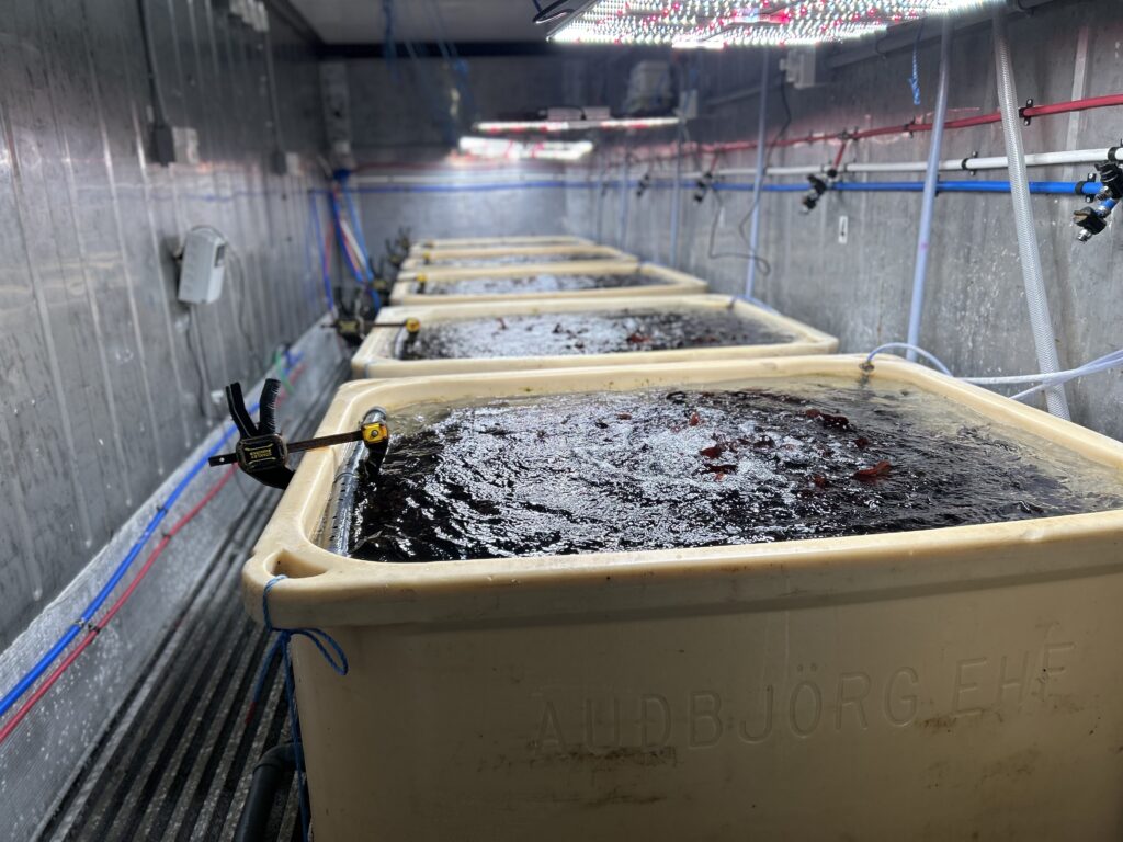 „Við mælum magn uppleystra efna í flæði vatns bæði inn og út og sjáum skýran mun. Söl taka upp uppleyst efni úr vatninu og skila því mun hreinna — það sýnir vel hvernig þessi ræktun getur virkað sem lífsía (biofilter),“ útskýrir Ástráður.