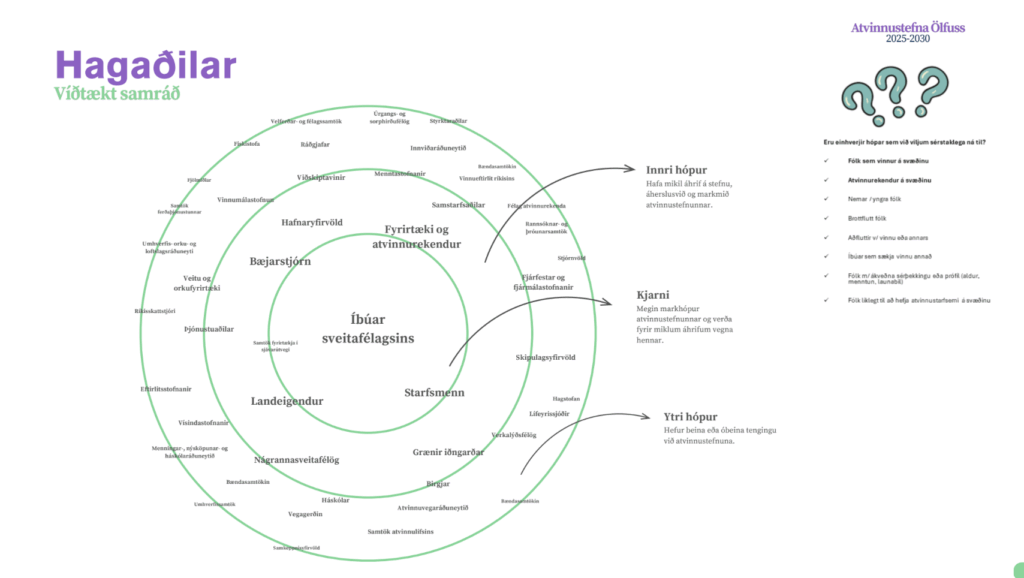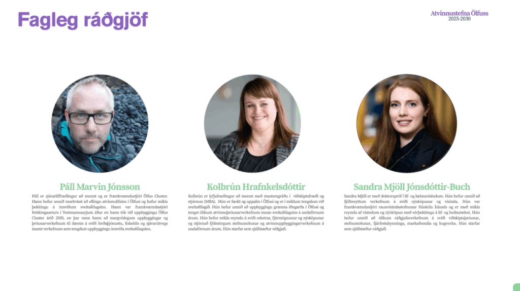 Sveitastjórn fól Ölfus Cluster að móta atvinnustefnu með víðtæku samráði og voru þær Kolbrún Hrafnkelsdóttir og Sandra Mjöll Jónsdóttir fengnar til að koma að stefnumótunarvinnunni.